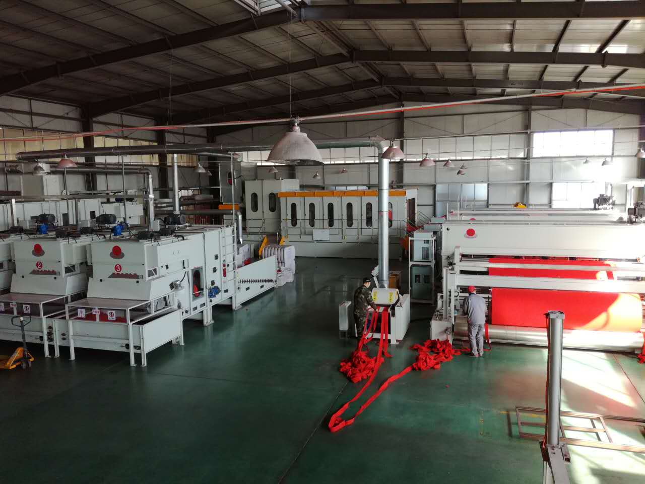 公司總投資1億余元,首期工程已完成投資3000萬元。現(xiàn)已建設標準廠房15000余平方米、引進多條無紡布生產線。其中,針刺無紡線4條、起絨機兩臺、電腦提花機1臺、條紋機1臺、地毯整理烘干定型線兩套。